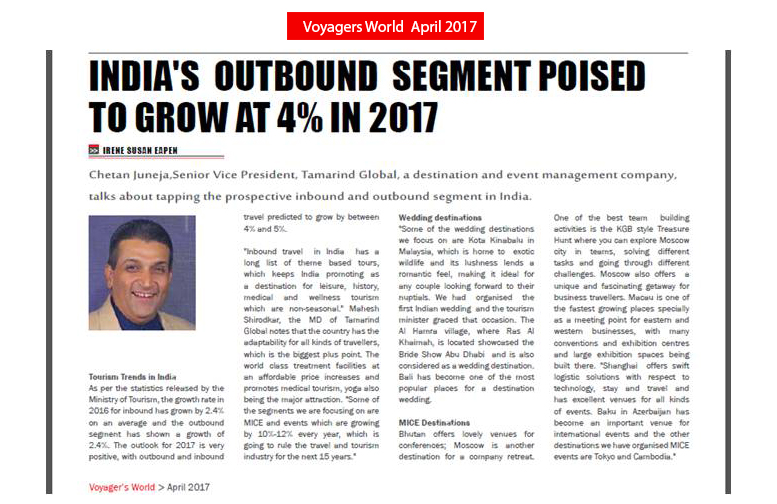 India's Outbound Segment Poised to Grow at 4% in 2017: Voyager's World